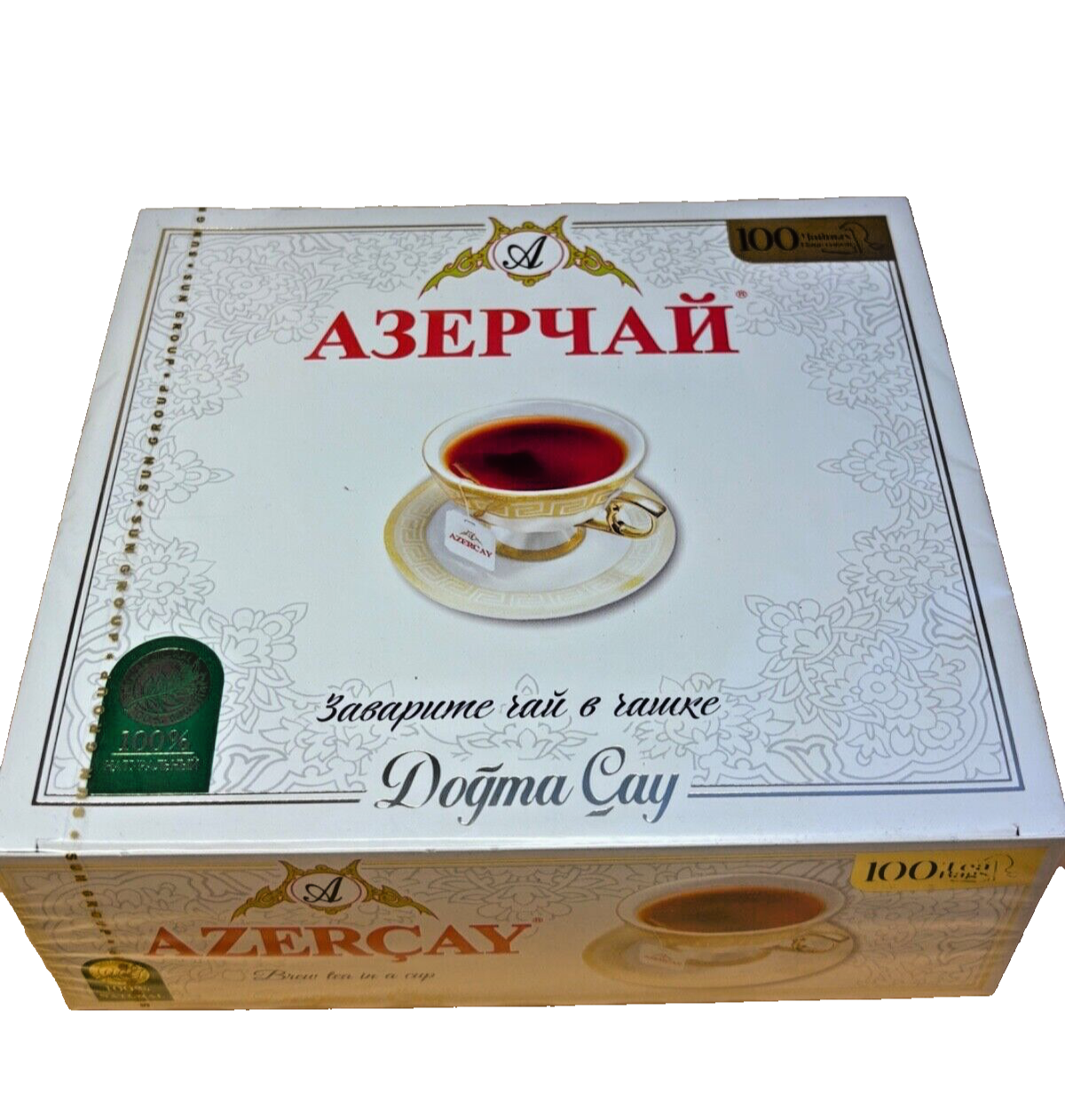 Classic black tea in traditional paper box packaging. Convenient, eco-friendly option for everyday brewing and authentic Azerbaijani flavor.